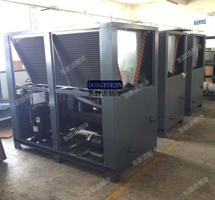 東躍進(jìn)制冷經(jīng)過十幾年的發(fā)展,雖然風(fēng)冷式箱式冷水機(jī)作為較簡單的機(jī)型,但是使用的客戶還是非常多的,我們也對其進(jìn)行了多次升級,機(jī)組在性能上更加的穩(wěn)定,故障率也非常低,多壓縮機(jī)制冷系統(tǒng)設(shè)計使使用比較節(jié)能。雖然每個廠家的風(fēng)冷箱式冷水機(jī)外觀不一樣,但實際上配置都相差無幾,都是由渦旋式壓縮機(jī),殼管式或水箱盤管式蒸發(fā)器,翅片式冷凝器,水泵,風(fēng)機(jī),膨脹閥,過濾器,高低壓壓力表,電控系統(tǒng),機(jī)箱等組成。